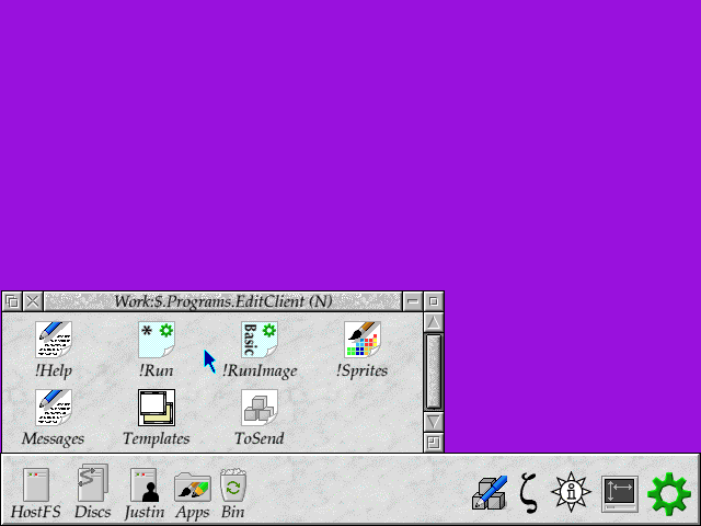 The changes to the window editor made it far easier to make other gadgets available. It was, after all, meant to be a modular system. But there were other areas that really needed addressing. I wanted to provide more integration to other applications, particularly integrated tools for developing software, which could be provided by third parties. There were a few things that could be done there with close integration for Toolbox messaging, object and gadget identifiers, and the like, but I wanted to leave those until later. Not only were they hard, but they also needed for me to understand what the likely use cases were going to be, before designing a protocol to communicate such things.