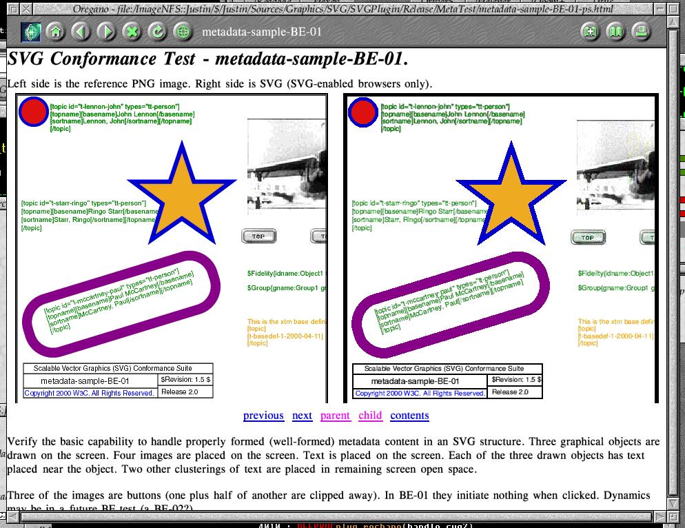 The SVG plug-in application wasn't too complicated - essentially all it was doing was taking input from a source (filesystem or browser), feeding it to a converter (my 'ConvertSVG' tool), and then rendering it in a window. I added support to allow the image to be saved, and copied to the clipboard as well. Later there was support for processing related resource (eg JPEGs which were referenced by the SVG), which was done very tackily - the command line tool would request the resource in the TaskWindow output, and the plug-in would recognise this, request the data from the browser and when it received the data it would place it in a file and pass the filename to the converter by sending it as the standard input.