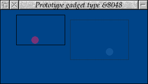 Normally a gadget would create icons, or other gadgets (or nested windows), to provide a representation of the gadget in the window, but as the redraw was handled by the RedrawManager/handler entry point, there isn't actually any need for any of these. However, if the user is expected to interact with the gadget, it is necessary to have some way of detecting the interaction. Although that could be performed through filtering the mouse click on the background, that wouldn't be ideal as the gadget itself might be placed over other gadgets (notwithstanding the RedrawManager redraw being outside the icon ordering) and filtering for all clicks might be expensive.